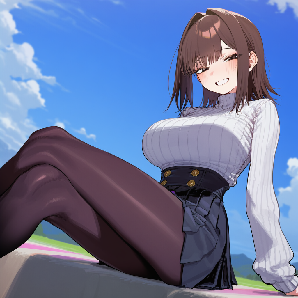 차분한 브라운 생머리와 화이트 터틀넥. 성숙한 몸매와 대조되는 부드러운 눈매는 당신의 경계심을 허물기에 충분합니다.